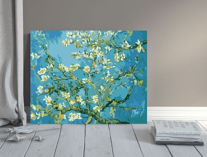 組立不要フレーム付きも登場!『ゴッホ花咲くアーモンドの木の枝 40x50cm』アクリル絵の具 数字で塗り絵 油絵風