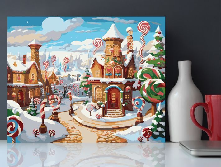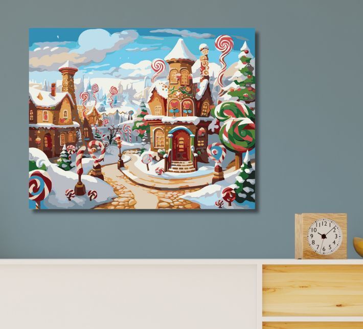 新作 期間限定『お菓子の国』アクリル絵の具で作る。数字で塗り絵 数字油絵 ナンバーペイント 油絵風 (50x40cm) No.192