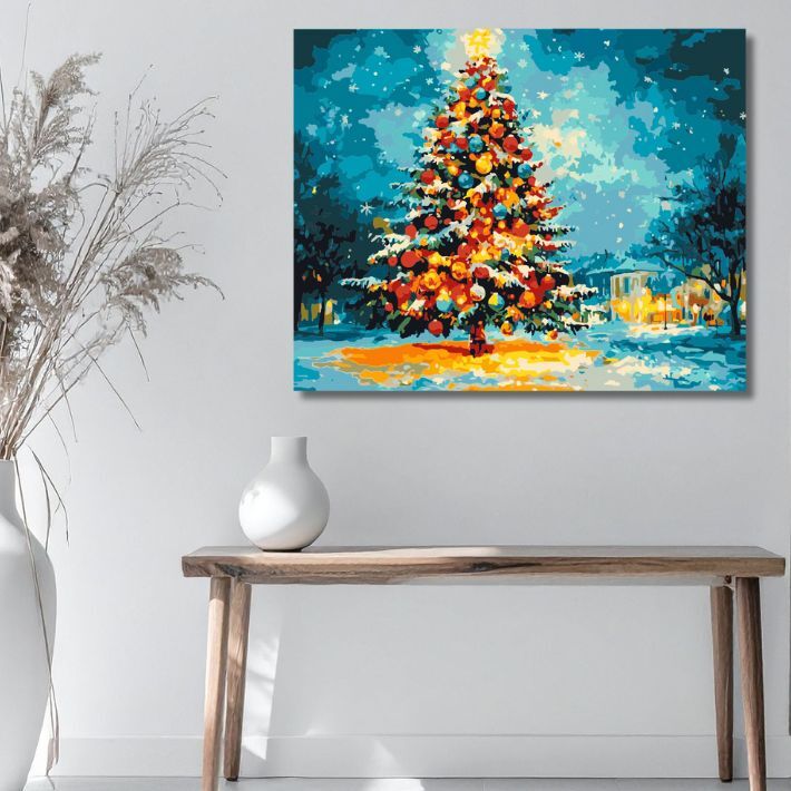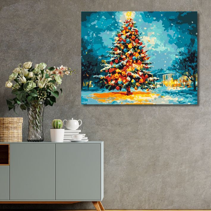 新作 期間限定『ツリーイルミネーション』アクリル絵の具で作る。数字で塗り絵 数字油絵 ナンバーペイント 油絵風 (50x40cm) No.194