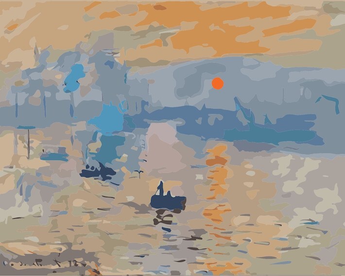 新作 『モネ 印象 日の出』アクリル絵の具で作る。数字で塗り絵 数字油絵 ナンバーペイント 油絵風 (50x40cm) No.204