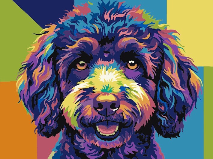 新作『プードル』アクリル絵の具で作る。数字で塗り絵 数字油絵 ナンバーペイント 油絵風 (30x40cm) No.200