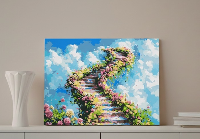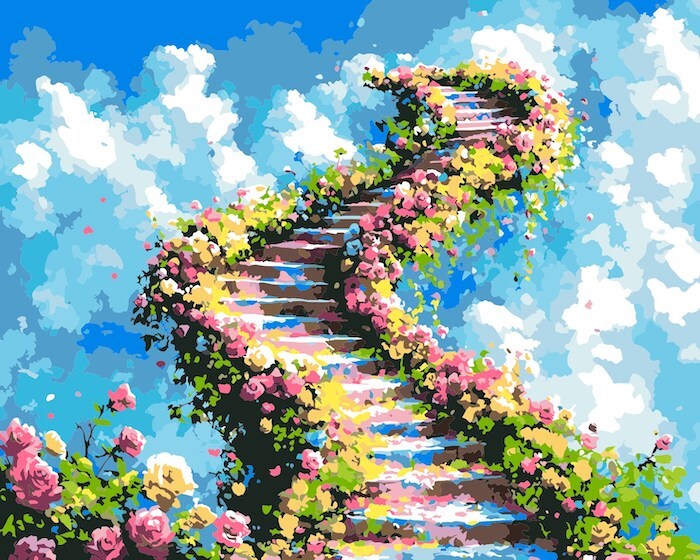 新作入荷!『雲の上の階段』アクリル絵の具で作る。数字で塗り絵 数字油絵 ナンバーペイント 油絵風 (50x40cm) No.209