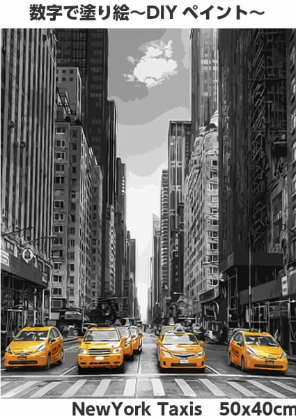再販!『ニューヨークタクシー』アクリル絵の具で作る。数字で塗り絵 油絵風 (50x40cm、フレーム付)