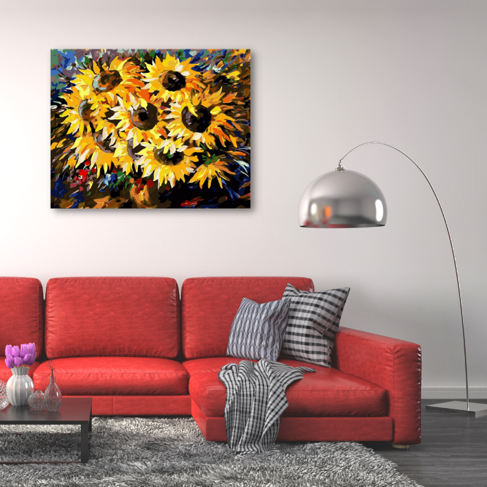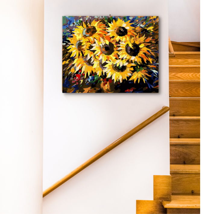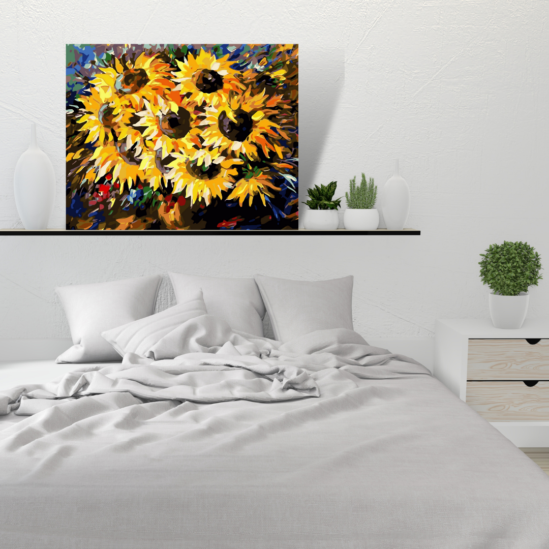『向日葵』アクリル絵の具で作る。数字で塗り絵 油絵風 (50x40cm、フレーム付き!)