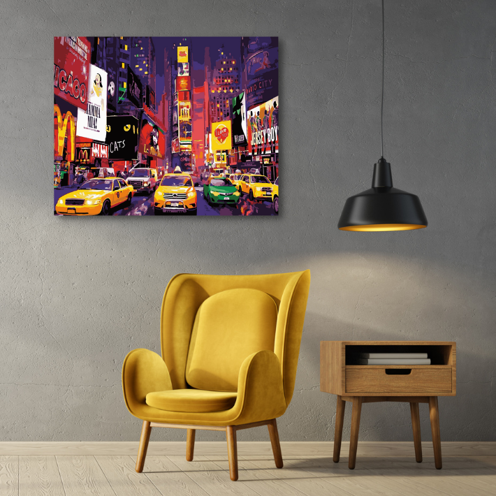 再販!『NY マンハッタン ネオン』アクリル絵の具で作る。数字油絵 ナンバーペイント ぬりえ アート 数字で塗り絵 油絵風 (50x40cm、フレーム付) ¥3,850