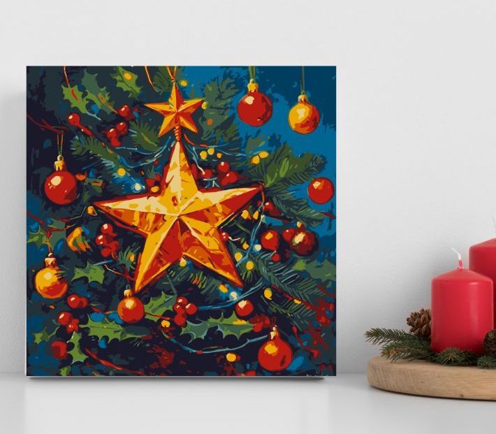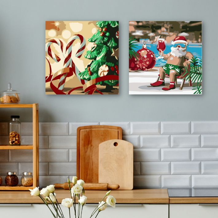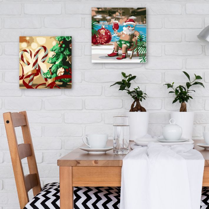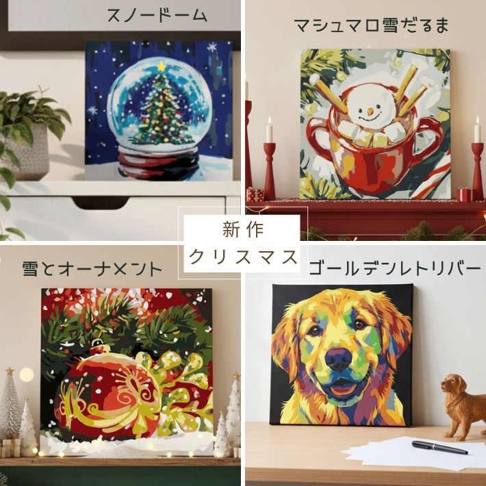 クリスマスデザイン 『オリジナルフレーム付きデザイン』」数字で塗り絵 油絵風 (キャンバスフレーム付き、20x20cm)¥1,800