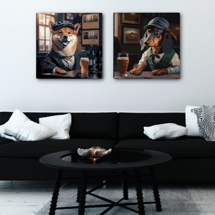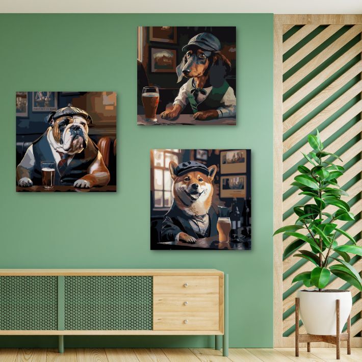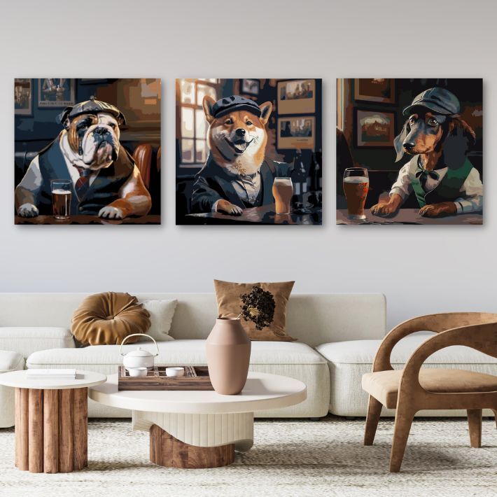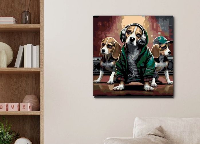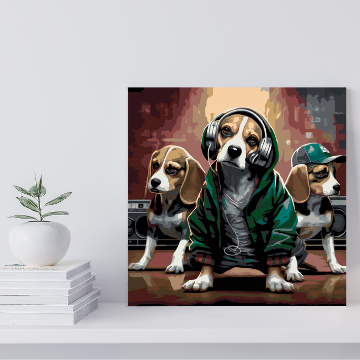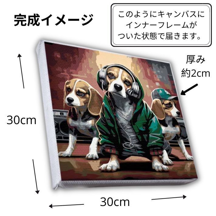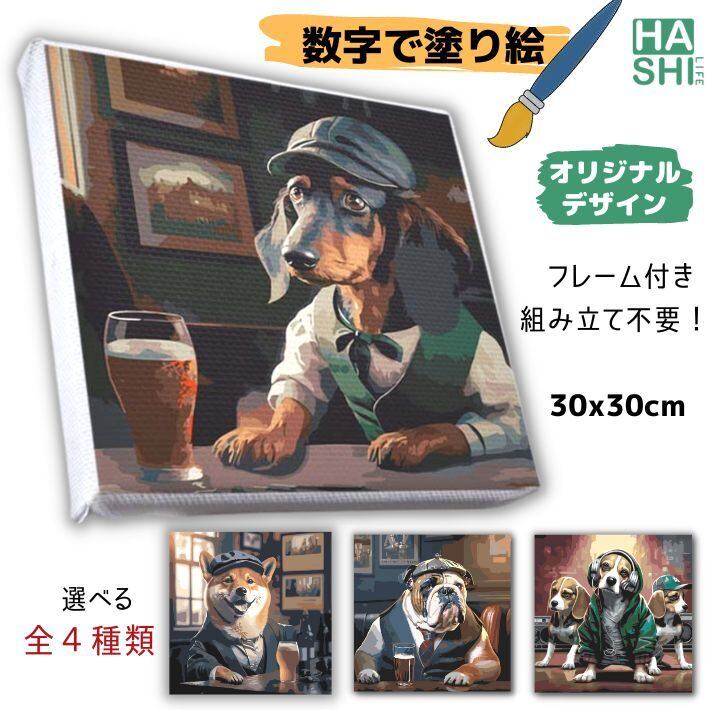 当店オリジナル Oh my dogs!シリーズ『フレーム付きデザイン』組立て不要! 数字で塗り絵 油絵風 犬(30x30cm)
