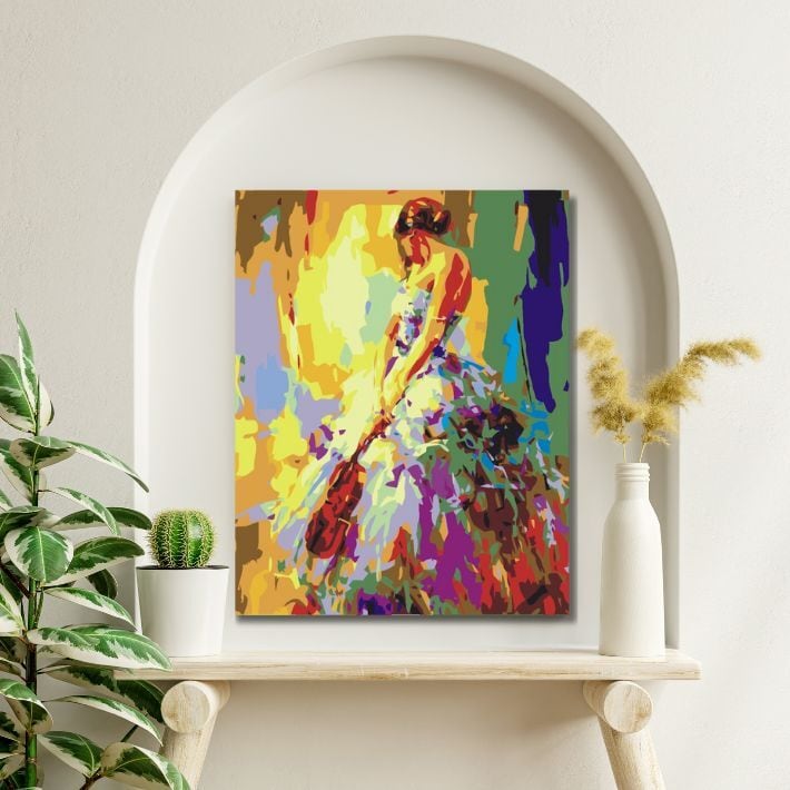 フレーム付き『バイオリニスト 40x50cm』アクリル絵の具 数字で塗り絵 油絵風 No.122