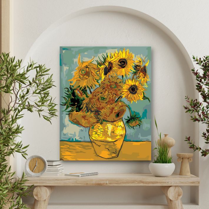組立不要フレーム付きも登場!『ゴッホ向日葵 40x50cm』アクリル絵の具 数字で塗り絵 油絵風 No.87