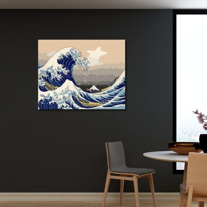 『浮世絵 葛飾北斎 神奈川沖浪裏』アクリル絵の具で作る。選べるフレーム付き 数字で塗り絵 油絵風 (50x40cm)